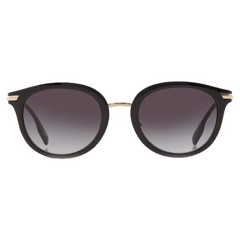 Burberry Sunglasses. Series Kelsey. Series number: BE4398D. Color code: 30018G. Shape: Phantos. Lens Width: 50 mm. Lens Bridge: 21 mm. Arm Length: 140 mm. 100% UV protection. Non-Polarized. Frame Material: Plastic. Frame Color: Black. Lenses Type: Grey Gradient. Rim Style: Full-Rim. UPC/EAN code: 8056597848688. Burberry Kelsey Grey Gradient Phantos Ladies Sunglasses BE4398D 30018G 50.