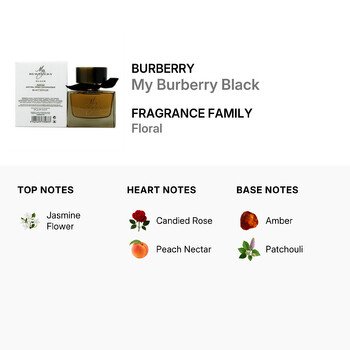 My Burberry Black opens with the rich and enchanting aroma of jasmine flower, setting the stage for a warm and seductive experience. At its heart, the fragrance reveals a luscious blend of candied rose and peach nectar, adding a touch of sweetness and femininity. The scent deepens into a mesmerizing base of amber and patchouli, creating a warm and lasting impression.