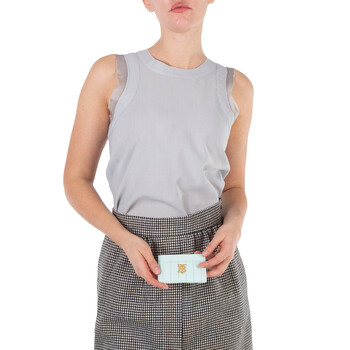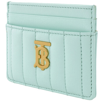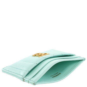 Burberry Ladies Card Case. SKU: 8070452. Material: Lambskin. Color: Cool Mint. Size: W: 10.5cm× H: 8cm. Burberry Logo Plaque Quilted Card Case. This card case features a logo plaque, a quilted design and card slots. 100% Calf Leather. Made in Italy.