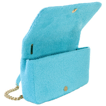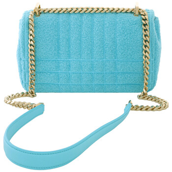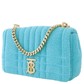 Burberry Ladies Crossbody. SKU: 8070558. Barcode: 5045702035856. Color: Vivid Turquoise. Size: W 23 x D 6 x H 13cm. Burberry Lola Small Adjustable Chain Strap Bag. This handbag features an adjustable chain and lambskin shoulder strap, a foldover top with a magnetic closure, one interior slip pocket, hand-painted edges, and polished metal hardware. Made in Italy. Outer: 70% cotton, 26% polyamide, 4% polyester Trim: 100% lambskin Lining: 55% cotton, 45% linen. Made in Italy.