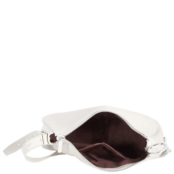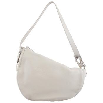 Burberry Ladies Shoulder Bag. SKU: 8085351. Barcode: 5045705570767. Color: Fog. Size: 14.25" W x 12.5" H x 4.75". Burberry Medium Knight Bag in Fog. The Medium Knight Bag is crafted from leather and features a top zipper closure, one main compartment, and an interior slip pocket. The clip hardware, inspired by the Equestrian Knight Design, adds a distinctive touch. It also includes a detachable and adjustable leather shoulder strap. Made in Italy.