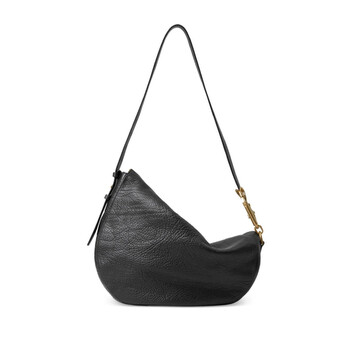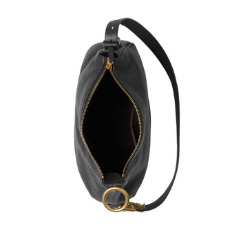 Burberry Ladies Shoulder Bag. SKU: 8075255. Color: Black. Size: W:37cm x H:32cm x D:13cm. Burberry Medium Knight Ring Detailed Leather Shoulder Bag. This shoulder bag features an adjustable leather strap, zip closure, hand-painted edges, brushed metal hardware, and a suede lining. Outer: 100% calf leather, Lining: 100% calf suede. Made in Italy.