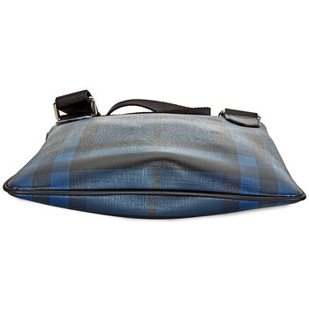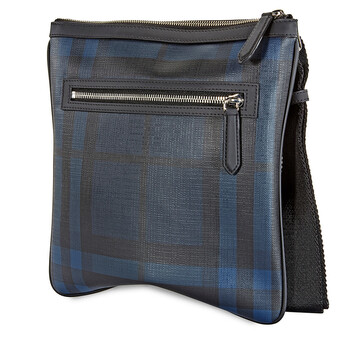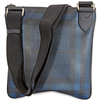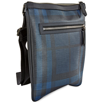 Burberry Men's Crossbody. SKU: 3996224. Barcode: 5045490932689. Closure Type: Zip-Up. Color: Navy/Black. Size: 10.6 x 1.4 x 10.6in. Burberry Men's London Check Beckley Crossbody. A compact crossbody bag in London check features a top zip closure, an external zipped pocket, internal pockets, and an adjustable shoulder strap. 100% PVC with leather trim. Lining: 100% polyester.