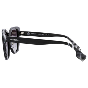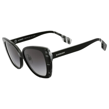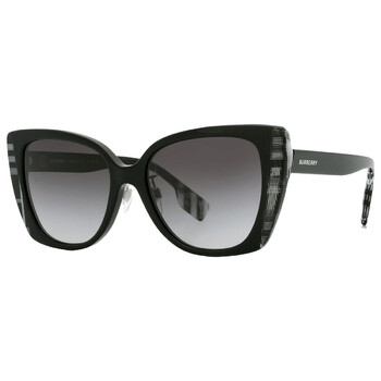 Burberry Sunglasses. Series Meryl. Color code: 40518G. Shape: Butterfly. Lens Width: 54 mm. Lens Bridge: 17 mm. Arm Length: 140 mm. 100% UV protection. Frame Material: Acetate. Frame Color: Black;Black White Check. Lenses Type: Grey Gradient. Rim Style: Full-Rim. UPC/EAN code: 8056597838764. Burberry Meryl Grey Gradient Butterfly Ladies Sunglasses BE4393F 40518G 54.