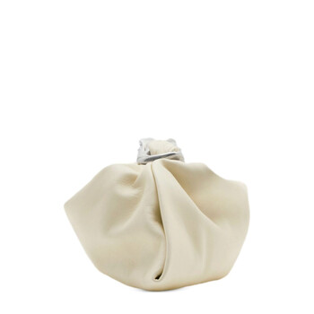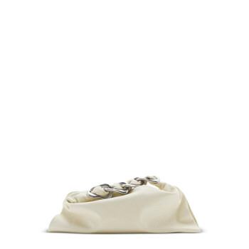 Burberry Ladies Shoulder Bag. SKU: 8090989. Color: Almond. Size: 12.6 x 3.5 x 5.5in. Burberry Mini Swan Leather Bag - Almond. This Italian-made shoulder bag is crafted from a single piece of smooth calf leather, featuring a softly structured shape, a chain-link strap interwoven with leather, a zip closure, an interior zip pocket, hand-painted edges, brushed metal hardware, and a subtle embossed Equestrian Knight Design at the front. Outer: 100% calf leather. Made in Italy.