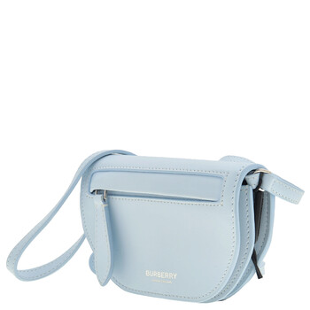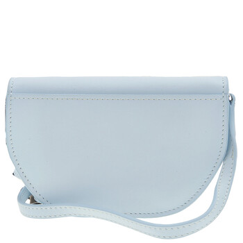 Burberry Ladies Card Case. SKU: 8040737. Color: Pale Blue. Burberry Olympia Leather Leather Crossbody Card Case. Made from leather, the card case features a front zip pocket, front embossed logo stamp, silver hardware and strap for shoulder or crossbody wear. 100% Cow Grain Leather. Made in Italy.