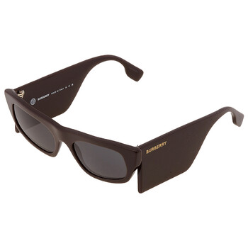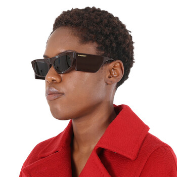 Burberry Sunglasses. Series Palmer. Series number: BE4385. Color code: 403787. Shape: Irregular. Lens Width: 55 mm. Lens Bridge: 19 mm. Arm Length: 140 mm. 100% UV protection. Frame Material: Plastic. Frame Color: Brown. Lenses Type: Dark Grey. Rim Style: Full-Rim. UPC/EAN code: 8056597787499. Burberry Palmer Dark Grey Irregular Ladies Sunglasses BE4385 403787 55.