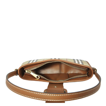 Burberry Ladies Belt Bag. SKU: 8070563. Color: Vntg Chk/Briar Brown. Burberry Sling Vintage Check Shoulder Bag. This Sling shoulder bag from Burberry features a top zip fastening, adjustable shoulder strap, Vintage Check pattern, leather trim, main compartment with an internal zip-fastening pocket, strap and press-stud fastening. Dimensions: 10.2 x 2.4 x 4.7 inches; strap drop: 9.8 - 11.8 inches.Made in Italy.
