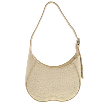 Burberry Ladies Shoulder Bag. SKU: 8083510. Color: Pearl. This elegant shoulder bag, crafted in Italy from premium grainy calf leather, exudes sophistication and timeless style. Featuring a structured B-shaped base, the design is both modern and functional. Its name is inspired by the brushed metal knight charm, a nod to the brand's heritage. Perfectly balancing practicality and luxury, this bag is a standout accessory for any occasion. Size: 23 x 4.5 x 19 cm/9.1" x 1.8" x 7.5". Outer: 100% calf leather. Lining: 100% calf leather. Made in Italy.