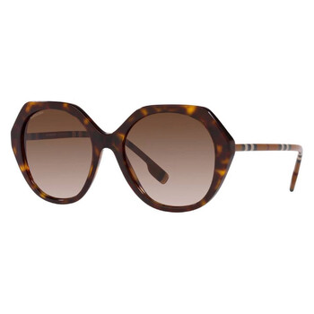 Burberry Sunglasses. Series Vanessa. Series number: BE4375. Color code: 401713. Shape: Geometric. Lens Width: 55 mm. Lens Bridge: 18 mm. Arm Length: 140 mm. 100% UV protection. Frame Material: Plastic. Frame Color: Dark Havana. Lenses Type: Brown Gradient. Rim Style: Full-Rim. UPC/EAN code: 8056597704939. Burberry Vanessa Brown Gradient Geometric Ladies Sunglasses BE4375 401713 55.