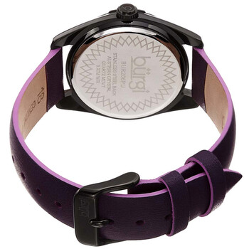 Black alloy case with a black leather with colored edges strap. Fixed black crystal set bezel. Black dial with sword hands and Roman numeral hour markers. Minute scale around the inner rim. Dial Type: Analog. Quartz movement. Scratch resistant flat mineral crystal. Push/pull crown. Solid case back. Round case shape, case size: 36 mm, case thickness: 9.5 mm. Band width: 18 mm, band length: 7.5 inches. Buckle clasp. Water resistant at 30 meters / 100 feet. Functions: hour, minute, second. Casual watch style. Burgi Black Dial Ladies Watch BUR206PU.