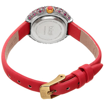 Gold-tone brass bezel set (all over) with Swarovski crystals with a pink leather strap. Fixed gold-tone brass bezel set with Swarovski crystals. Pink dial with gold-tone dauphine-style hands. Dot markers at the 3, 6 and 9 o'clock positions. A single diamond is set at the 12 o'clock position. Dial Type: Analog. Quartz movement. Scratch resistant mineral crystal. Pull / push crown. Solid case back. Round case shape. Case size: 30 mm. Case thickness: 7.5 mm. Band width: 10 mm. Band length: 7 inches. Tang clasp. Water resistant at 30 meters / 100 feet. Functions: hour, minute, second. Fashion watch style. Burgi Quartz Diamond Pink Dial Ladies Watch BUR240PK.