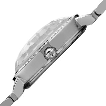 Silver-tone composite metal case with a silver-tone stainless steel bracelet. Fixed silver-tone composite metal bezel set with crystals. Red dial with silver-tone hands and crystal hour markers. Roman numerals mark the 3, 6, 9 and 12 o'clock positions. Minute markers around the outer rim. Dial Type: Analog. Quartz movement. Scratch resistant Hardlex crystal. Pull / push crown. Solid case back. Round case shape. Case size: 36 mm. Case thickness: 13 mm. Band width: 14 mm. Fold over clasp with a push button release. Water resistant at 30 meters / 100 feet. Functions: hour, minute, second. Dress watch style. Burgi Quartz Red Dial Stainless Steel Ladies Watch BUR269SSRD.