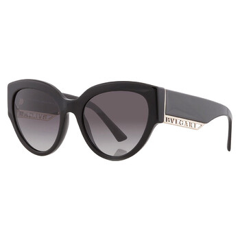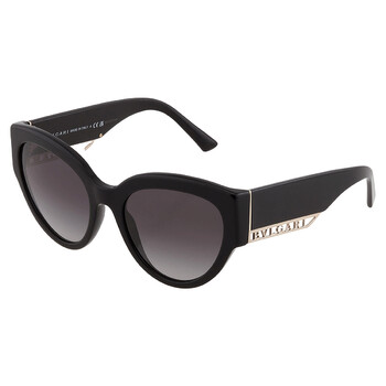 Bvlgari Sunglasses. Series number: BV8258. Color code: 501/8G. Shape: Oval. Lens Width: 55 mm. Lens Bridge: 20 mm. Arm Length: 140 mm. 100% UV protection. Non-Polarized. Frame Material: Plastic. Frame Color: Black. Lenses Type: Grey Gradient. Rim Style: Full-Rim. UPC/EAN code: 8056597838856. Bvlgari Grey Gradient Oval Ladies Sunglasses BV8258 501/8G 55.