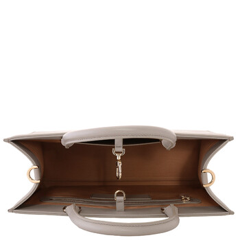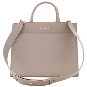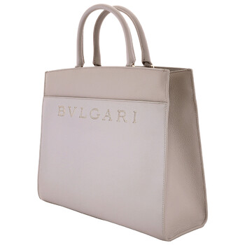 Bvlgari Ladies Tote. SKU: 291956. Bvlgari Leather Logo Embossed Tote Bag. Made from leather, this Bvlgari features a center zip compartment, dual top carry handles, patch pockets, gold-tone hardare and logo plaque on front.