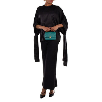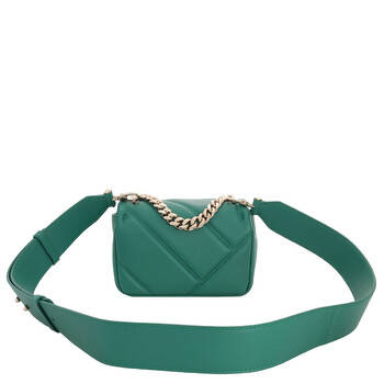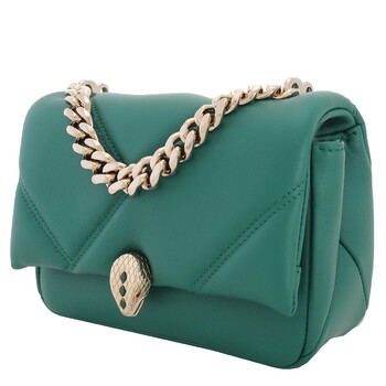 Bvlgari Ladies Shoulder Bag. Serpenti Cabochon series. SKU: 292645. Color: Green. Size: 7.1 x 6.7 x 2.2". Bvlgari Mini Serpenti Cabochon Crossbody Bag. The Serpenti Cabochon Maxi Chain mini crossbody bag, crafted from jade green calf leather with a maxi matelasse pattern inspired by cabochon-cut gems, features a bold chain handle echoing Bvlgari's jewelry heritage, a 1960s-inspired snakehead magnetic closure adorned with gemstones, a leather strap, a single compartment with a card slot, and an internal metal tag engraved with the Bvlgari logo. Material: Calf leather. Made in Italy.