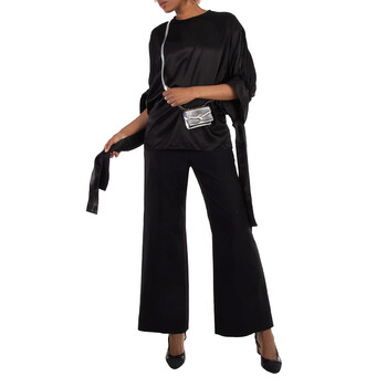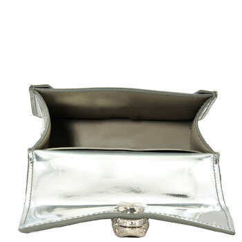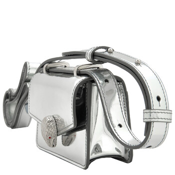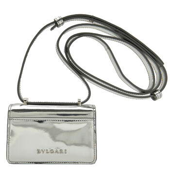 Bvlgari Ladies Mini Bag. SKU: 293502. Color: Silver. Size: 4.3 x 2.8 x 1.6". Bvlgari Serpenti Forever Leather Micro Bag. The micro bag, crafted in silver mirror calf leather with a grey nappa leather interior, features a heritage snakehead magnetic closure inspired by a 1960s Bvlgari watch, a leather strap, and a palladium-plated brass hardware, offering a stylish yet functional design with multiple pockets and compartments. Material: Calf leather. Made in Italy.