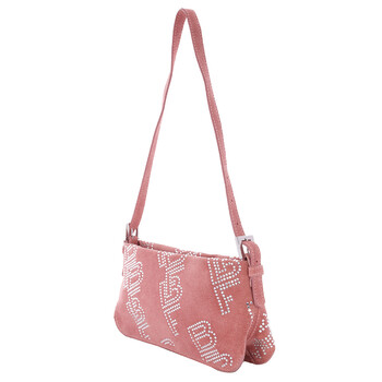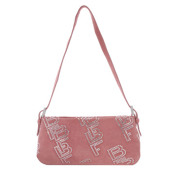 By Far Ladies Shoulder Bag. SKU: 22PFDULSSLMSNCMED-SLM. Barcode: 3800977171072. Color: Salmon. By Far Ladies Salmon Dulce Crystal Shoulder Bag featuring studded logo detail, silver-tone hardware, top zip fastening and single rounded top handle. 100% Calfskin Leather.