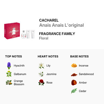 Discover the timeless charm of the Cacharel Anais Anais L'original Gift Set, a classic ladies' fragrance that brings elegance and romance to your daily routine. Launched in 2014, this captivating scent from the iconic French fashion house Cacharel blends soft floral notes with a warm, comforting base, making it perfect for everyday wear or special occasions.