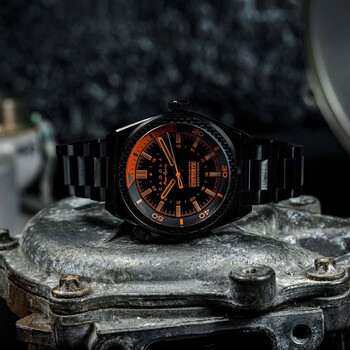 The Costin series from the Cosworth x Cadola range is a sparkling collection of timepieces that inhabit both the spirit and the precision of race-bound watches. This meca-quartz limited edition features the unique Seiko TMI built hybrid movement which delivers the best of quartz precision with the sweep charm and character of a mechanical timepiece. Black stainless steel case and bracelet. Fixed black stainless steel bezel. Black dial with Arabic numeral & index hour markers. Minute markers around the outer rim. Dial Type: Analog. Luminescent hands and markers. Seiko - VH31 quartz movement. Scratch resistant mineral crystal. Pull / push crown. Solid case back. Round case shape, case size: 42 mm, case thickness: 14 mm. Band width: 20 mm, band length: 8 inches. Fold over clasp with a safety release. Water resistant at 100 meters / 330 feet. Functions: hour, minute, second. Cosworth Costin Series. Casual watch style. Cadola Cosworth Costin Quartz Black Dial Men's Watch CD-1039-44.