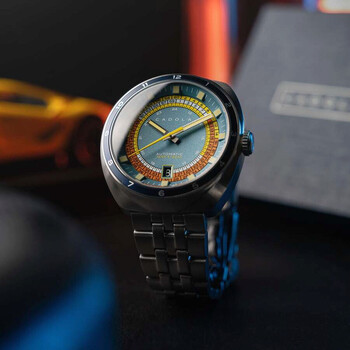 Vibrant with a touch of vintage aesthetics, the Giulia Suprema Automatic pays homage to the exhilarating world of motorsport. The stainless steel cushion case exudes a robust yet refined look. With the reliable TMI NH35 automatic movement, this is the perfect racing companion. Silver-tone stainless steel case and bracelet. Fixed blue aluminum bezel. Blue dial with silver-tone hands and Arabic numeral & index hour markers. Minute markers around the outer rim. Dial Type: Analog. Luminescent hands and markers. Date display at the 6 o'clock position. Seiko - NH35 automatic movement. Scratch resistant mineral crystal. Pull / push crown. Solid case back. Round case shape, case size: 43 mm, case thickness: 14 mm. Band width: 22 mm, band length: 8 inches. Fold over clasp with a safety release. Water resistant at 50 meters / 165 feet. Functions: date, hour, minute, second. Giulia Suprema Series. Casual watch style. Cadola Giulia Suprema Automatic Blue Dial Men's Watch CD-1044-22.