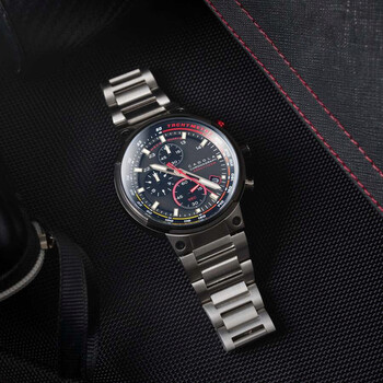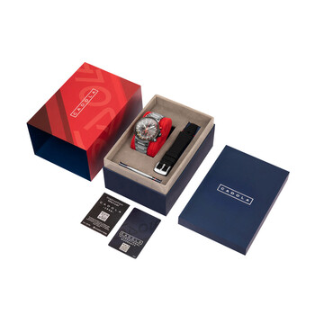 This racing-inspired timepiece is designed for speed, featuring an aerodynamic case that combines robust engineering with a sleek profile. Powered by the impressive hybrid VK series TMI Japan Meca-quartz chronograph movement, it delivers exceptional performance. The watch includes an additional custom molded polyurethane strap for added versatility, alongside its solid stainless steel bracelet. Silver-tone stainless steel case and bracelet. Fixed silver-tone stainless steel bezel. Grey dial with silver-tone hands and Arabic numeral & index hour markers. Minute markers around the outer rim. Dial Type: Analog. Luminescent hands and markers. Date display at the 4 o'clock position. Seiko - VK67 quartz movement. Scratch resistant mineral crystal. Pull / push crown. Solid case back. Round case shape, case size: 44 mm, case thickness: 13 mm. Band width: 24 mm, band length: 8 inches. Fold over clasp with a safety release. Water resistant at 100 meters / 330 feet. Functions: chronograph, date, hour, minute, second. Surtees Series. Casual watch style. Cadola Surtees Chronograph Quartz Grey Dial Men's Watch CD-1028-11.
