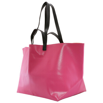 Cahu Ladies Shoulder Bag. SKU: PMLP-O-LIGHT PINK - ORANGE. Color: Pink. Cahu Pratique Medium PVC Canvas Shoulder Bag. The Le Practique Tote is the perfect blend of sleek style and practicality. Designed for versatility and durability, its sturdy construction ensures it can handle any challenge. Whether for casual or formal occasions, this bag complements any style, making it a must-have accessory. Featuring a waterproof PVC canvas exterior, cotton lining, both short and long leather handles, and an inside pocket for added convenience. 100% Canvas, 100% cotton.