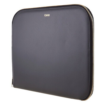 Cahu Ladies Pouch. SKU: POCHETTE CLAUDE-NOIR. Color: Noir. Size: 36 x 25 cm. Cahu The Claude Zip-Around Pouch. Waterproof PVC canvas exterior. 100% cotton lining. 13 inch computer sleeve. Gold zipper.