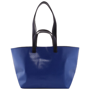 Cahu Ladies Tote. SKU: PZSDB-N -BLEU MARINE / NOIR. Color: Bleu Marine/Noir. Cahu The Practical Tote Bag. Waterproof PVC canvas exterior. 100% cotton lining. Short handles and long leather handles (for hand, elbow or shoulder carry). Inside pocket (for essentials).