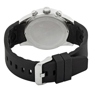 Stainless steel case with a black rubber strap. Fixed stainless steel bezel showing tachymeter markings. White dial with luminous silver-tone hands and Arabic hour markers. Minute markers around the outer rim. Dial Type: Analog. Luminescent hands and markers. Date display at the 6 o'clock position. Chronograph - three sub-dials displaying: 60 second, 30 minute and 24 hours. Quartz movement. Scratch resistant mineral crystal. Pull / push crown. Solid case back. Round case shape. Case size: 45 mm. Case thickness: 12.5 mm. Band width: 22 mm. Tang clasp. Water resistant at 100 meters / 330 feet. Functions: chronograph, tachymeter, date, hour, minute, second. Casual watch style. Watch label: Swiss Quartz. Item Variations: SC 4R4 04 001, SC.4R4.04.001, SC4R404001. Calibre Recruit Chronograph White Dial Men's Watch SC-4R4-04-001.