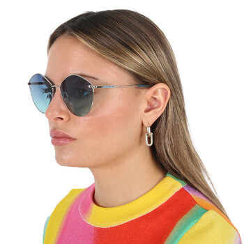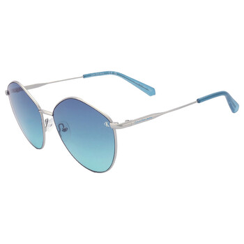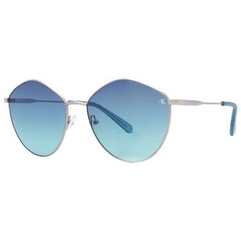 Calvin Klein Sunglasses. Series number: CKJ22202S. Color code: 040. Shape: Oval. Lens Width: 61 mm. Lens Bridge: 17 mm. Arm Length: 140 mm. 100% UV protection. Non-Polarized. Frame Material: Metal. Frame Color: Silver. Lenses Type: Light Blue. Rim Style: Full-Rim. UPC/EAN code: 883901142716. Calvin Klein Light Blue Oval Ladies Sunglasses CKJ22202S 040 61.
