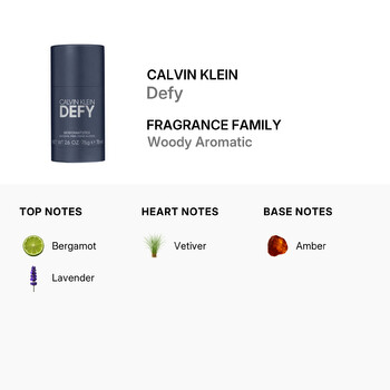 Made for men who embrace challenges and push boundaries, Calvin Klein Defy Deodorant is part of the body fragrance collection and reflects the brand’s signature blend of sophistication and edge. Perfectly sized at 2.4 oz, it’s easy to take with you for on-the-go confidence anytime, anywhere.