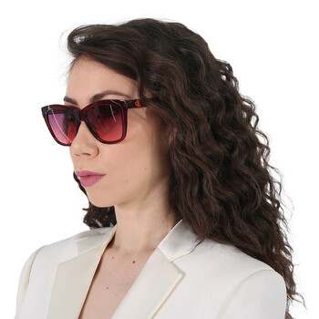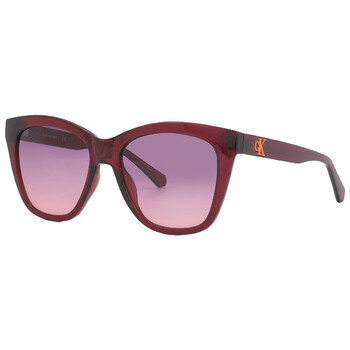 Calvin Klein Sunglasses. Series number: CKJ22608S. Color code: 679. Shape: Square. Lens Width: 54 mm. Lens Bridge: 17 mm. Arm Length: 140 mm. 100% UV protection. Frame Material: Plastic. Frame Color: Cherry. Lenses Type: Red Gradient. Rim Style: Full-Rim. UPC/EAN code: 883901141221. Calvin Klein Red Gradient Square Ladies Sunglasses CKJ22608S 679 54.