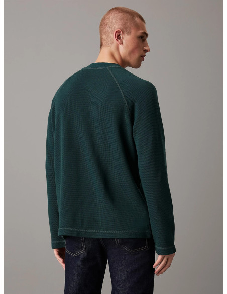 მაისური CALVIN KLEIN - WASHED WOVEN LABEL WAFFLE RAGLAN