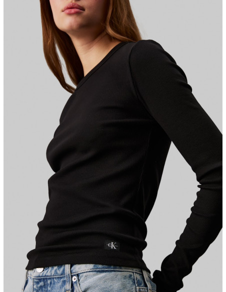 მაისურები CALVIN KLEIN - WOVEN LABEL RIB LONG SLEEVE