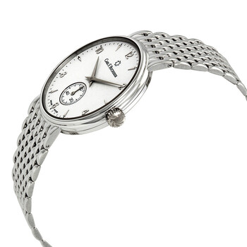 18kt white gold case with a 18kt white gold bracelet. Fixed 18kt white gold bezel. White dial with silver-tone hands and alternaring Arabic numeral and index hour markers. Minute markers around the outer rim. Dial Type: Analog. Seconds sub-dial above the 6 o'clock position. Hand wind movement. Scratch resistant sapphire crystal. Pull / push crown. Solid case back. Round case shape. Case size: 34 mm. Water resistant at 30 meters / 100 feet. Functions: hour, minute, second. Luxury watch style. Watch label: Swiss Made. Item Variations: 169.350.5. Carl F. Bucherer Adamavi 18 kt White Gold Ladies Watch 00.10305.02.26.21.