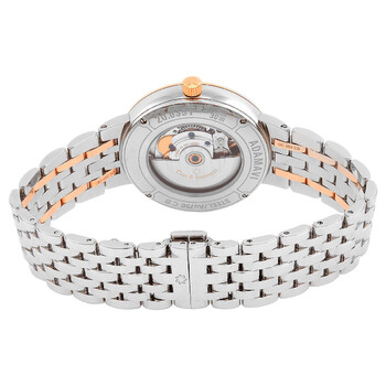 Two-tone (silver-tone and rose gold-tone) stainless steel/18k rose gold case and bracelet. Fixed 18k rose gold bezel. Gold-tone dial with rose gold-tone hands and Roman numeral/index hour markers. Dial Type: Analog. Date display at the 3 o'clock position. Carl F. Bucherer Calibre CFB 1950 Automatic movement, containing 26 Jewels, bitting at 28800 vph, and has a power reserve of approximately 38 hours. Scratch resistant sapphire crystal. Sapphire case back. Round case shape, case size: 39 mm. Folding clasp. Water resistant at 30 meters / 100 feet. Functions: date, hour, minute, second. Adamavi Series. Luxury watch style. Watch label: Swiss Made. Carl F. Bucherer Adamavi Automatic Gold Dial Watch 00.10314.07.45.21.