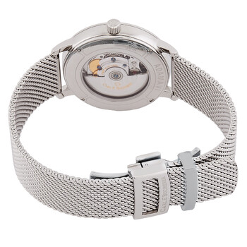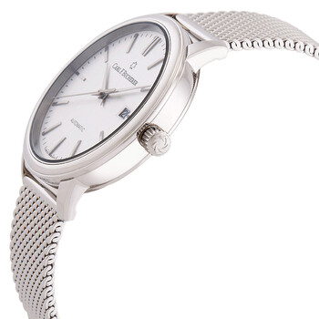 Silver-tone stainless steel case with a silver-tone stainless steel mesh bracelet. Fixed silver-tone bezel. Silver dial with silver-tone hands and index hour markers. Dial Type: Analog. Date display at the 3 o'clock position. Carl F. Bucherer Calibre CFB 1950 Automatic movement, containing 26 Jewels, bitting at 28800 vph, and has a power reserve of approximately 38 hours. Scratch resistant sapphire crystal. Sapphire case back. Round case shape, case size: 39 mm. Folding clasp. Water resistant at 30 meters / 100 feet. Functions: date, hour, minute, second. Adamavi Series. Luxury watch style. Watch label: Swiss Made. Carl F. Bucherer Adamavi Automatic Silver Dial Men's Watch 00.10314.08.13.21.