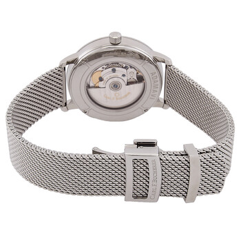 Silver-tone stainless steel case with a silver-tone stainless steel mesh bracelet. Fixed silver-tone stainless steel bezel. Silver dial with silver-tone hands and index hour markers. Minute markers around the outer rim. Dial Type: Analog. Date display at the 3 o'clock position. Carl F. Bucherer Calibre CFB 1950 Automatic movement, containing 26 Jewels, bitting at 28800 vph, and has a power reserve of approximately 38 hours. Scratch resistant sapphire crystal. Pull / push crown. Transparent see through case back. Round case shape, case size: 39 mm. Folding clasp. Water resistant at 30 meters / 100 feet. Functions: date, hour, minute, second. Adamavi Series. Luxury watch style. Watch label: Swiss Made. Carl F. Bucherer Adamavi Automatic Silver Dial Men's Watch 00.10314.08.13.22.