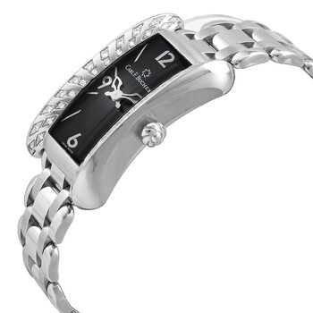 Silver-tone stainless steel case with a silver-tone stainless steel bracelet. Fixed silver-tone stainless steel bezel. Black dial with silver-tone hands and index-Arabic numerals hour markers. Dial Type: Analog. Carl F. Bucherer Calibre CFB 1852 quartz movement. Scratch resistant sapphire crystal. Pull / push crown. Solid case back. Unique case shape. Case size: 30 mm. Water resistant at 30 meters / 100 feet. Functions: hour, minute. Luxury watch style. Watch label: Swiss Made. Item Variations: 366.499.9. Carl F. Bucherer Alacria Diva Ladies Watch 00.10705.08.36.31.