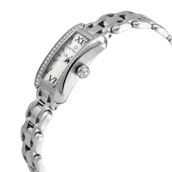Stainless steel case with a stainless steel bracelet. Fixed stainless steel bezel set with diamonds. Silver dial with silver-tone hands and index hour markers. Roman numerals appear at the 6 and 12 o'clock positions. Dial Type: Analog. Carl F. Bucherer calibre CFB 1850 quartz movement. Scratch resistant sapphire crystal. Pull / push crown. Solid case back. Unique case shape. Case dimensions: 30 mm x 21 mm. Case thickness: 6.2 mm. Band width: 14 mm. Fold over clasp clasp with a push button release. Water resistant at 30 meters / 100 feet. Functions: hour, minute. Alacria Princess Series. Luxury watch style. Watch label: Swiss Made. Item Variations: 366.307.6. Carl F. Bucherer Alacria Princess Ladies Watch 00.10703.08.15.31.
