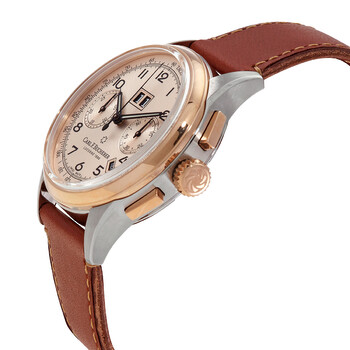 Analog, Month, Gold, Leather, Stainless Steel, Chronograph