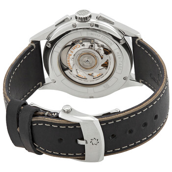 Stainless steel case with a black leather strap. Fixed stainless steel bezel. Black dial with silver-tone hands and Arabic numeral hour markers. Minute markers. Tachymeter markings around the outer rim. Dial Type: Analog. Luminescent hands. Date display below the 12 o'clock position. Month display between the 4 and 5 o'clock positions. Chronograph - two silver sub-dials displaying: 60 second and 30 minute. Carl F. Bucherer calibre CFB 1972 automatic movement with a 42-hour power reserve. Scratch resistant sapphire crystal. Transparent case back. Round case shape. Case size: 41 mm. Case thickness: 14.14 mm. Fold over clasp with a push button release. Water resistant at 30 meters / 100 feet. Functions: annual calendar, chronograph, tachymeter, month, big date, hour, minute, second. Heritage Bicompax Series. Dress watch style. Watch label: Swiss Made. Carl F. Bucherer Heritage Bicompax Chronograph Automatic Black Dial Men's Watch 00.10803.08.32.01.