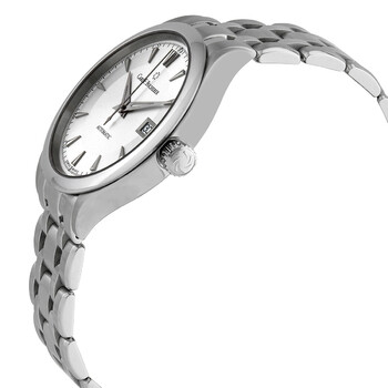 Stainless steel case with a stainless steel bracelet. Fixed stainless steel bezel. Silver dial with luminous silver-tone hands and index hour markers. Minute markers around the outer rim. Dial Type: Analog. Luminescent hands and markers. Date display at the 3 o'clock position. Carl F. Bucherer calibre CFB 1965 automatic movement with a 42-hour power reserve. Scratch resistant sapphire crystal. Transparent case back. Round case shape. Case size: 38 mm. Case thickness: 8.75 mm. Band width: 20 mm. Fold over clasp with a push button release. Water resistant at 30 meters / 100 feet. Functions: date, hour, minute, second. Manero Series. Luxury watch style. Watch label: Swiss Made. Item Variations: 166.245.3. Carl F. Bucherer Manero Automatic Men's Watch 00.10908.08.13.21.
