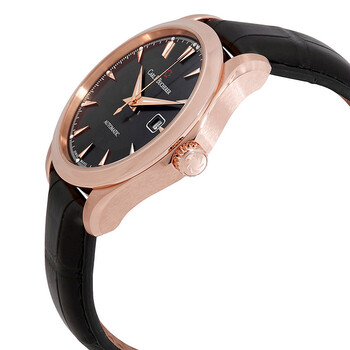 18kt rose gold case with a black (alligator) leather strap. Fixed 18kt rose gold bezel. Black dial with luminous rose gold-tone dauphine-style hands and index hour markers. Minute markers around the outer rim. Dial Type: Analog. Luminescent hands and markers. Date display at the 3 o'clock position. Carl F. Bucherer Calibre CFB 1950 Automatic movement, containing 26 Jewels, bitting at 28800 vph, and has a power reserve of approximately 38 hours. Scratch resistant sapphire crystal. Transparent case back. Round case shape. Case size: 42 mm. Case thickness: 11.98 mm. Tang clasp. Water resistant at 30 meters / 100 feet. Functions: date, hour, minute, second. Manero Autodate Series. Luxury watch style. Watch label: Swiss Made. Item Variations: 169.062.0. Carl F. Bucherer Manero Automatic Men's Watch 00.10915.03.33.01.