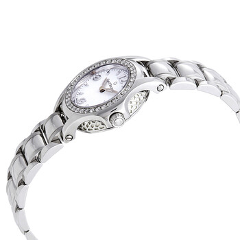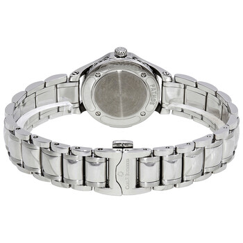Stainless steel case with a stainless steel bracelet. Fixed stainless steel bezel set with diamonds. Silver dial with silver-tone skeleton hands and index hour markers. Arabic numerals mark the 3, 6, 9 and 12 o'clock positions. Minute markers around the outer rim. Dial Type: Analog. Caliber CFB 1855 quartz movement. Scratch resistant sapphire crystal. Pull / push crown. Solid case back. Round case shape. Case size: 25 mm. Case thickness: 6.94 mm. Old over clasp with a push button release. Water resistant at 30 meters / 100 feet. Functions: hour, minute. Luxury watch style. Watch label: Swiss Made. Carl F. Bucherer Pathos Princess Silver Dial Ladies Watch 00.10521.08.26.31.