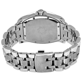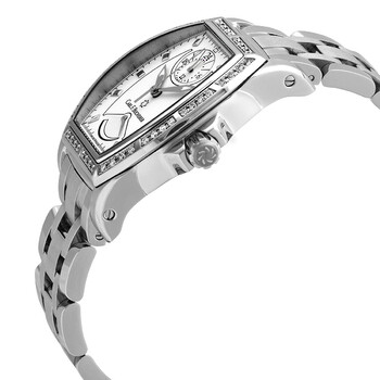 Stainless steel case with a stainless steel bracelet. Fixed stainless steel bezel set with diamonds. White dial with silver-tone hands and index hour markers. Minute markers around the outer rim. Dial Type: Analog. Luminescent hands and markers. Date display at the 3 o'clock position. Two displays showing: power reserve indicator and 24 hour. Carl F. Bucherer calibre CFB 1953 automatic movement with a 42-hour power reserve. Scratch resistant sapphire crystal. Screw down crown. Tonneau case shape. Case dimensions: 36 mm x 41.2 mm. Fold over clasp. Water resistant at 50 meters / 165 feet. Functions: date, GMT, second time zone, hour, minute, second, power reserve indicator. Patravi Series. Luxury watch style. Watch label: Swiss Made. Item Variations: 166.180.3. Carl F. Bucherer Patravi Automatic Diamond White Dial Watch 00.10612.08.23.31.