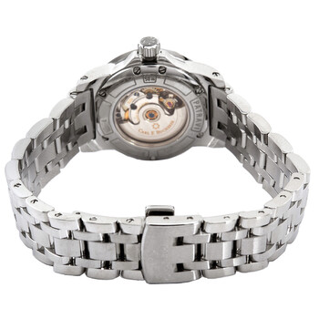 Stainless steel case with a stainless steel bracelet. Fixed stainless steel bezel. Silver dial with luminous silver-tone hands and Roman numeral hour markers. Minute markers around the outer rim. Dial Type: Analog. Luminescent hands. Date display at the 3 o'clock position. Carl F. Bucherer calibre CFB 1963 automatic movement with a 38-hour power reserve. Scratch resistant sapphire crystal. Pull / push crown. Transparent case back. Round case shape. Case size: 27 mm. Case thickness: 9.5 mm. Fold over clasp. Water resistant at 50 meters / 165 feet. Functions: date, hour, minute, second. Patravi Series. Luxury watch style. Watch label: Swiss Made. Item Variations: 366.401.3. Carl F. Bucherer Patravi Automatic Ladies Watch 00.10621.08.21.21.