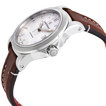 Silver-tone stainless steel case with a brown leather strap. Fixed silver-tone stainless steel bezel. Silver dial with luminous silver-tone hands and index hour markers. Minute markers around the outer rim. Dial Type: Analog. Luminescent hands and markers. Date display at the 3 o'clock position. Carl F. Bucherer Calibre CFB 1950 automatic movement with a 38-hour power reserve. Scratch resistant sapphire crystal. Pull / push crown. Transparent case back. Round case shape. Case size: 38 mm. Tang clasp. Water resistant at 50 meters / 165 feet. Functions: date, hour, minute, second. Luxury watch style. Watch label: Swiss Made. Item Variations: 166.116.5. Carl F. Bucherer Patravi Automatic Men's Watch 00.10617.08.13.01.