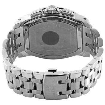 Stainless steel case with a 1 stainless steel bracelet. Fixed stainless steel bezel. Rhodium dial with silver-tone sword-shaped hands and index hour markers. Minute markers around the outer rim. Dial Type: Analog. Luminescent hands. Date display above center dial. month display between 4 and 5 o'clock position. Three sub-dials displaying: 60 second, 30 minute, flyback chronograph. power reserve,indicator. Carl F. Bucherer Calibre CFB 1902 automatic movement with a 42-hour power reserve. Scratch resistant sapphire crystal. Screw down crown. Solid case back. Tonneau case shape, case size: 46 mm x 43 mm, case thickness: 15.5 mm. Fold over clasp. Water resistant at 50 meters / 165 feet. Functions: annual calendar, chronograph, flyback, month, big date, hour, minute, small second, power reserve indicator. Patravi Series. Luxury watch style. Watch label: Swiss Made. Item Variations: 166.183.6. Carl F. Bucherer Patravi Chronograph Automatic Men's Watch 00.10626.08.63.21.